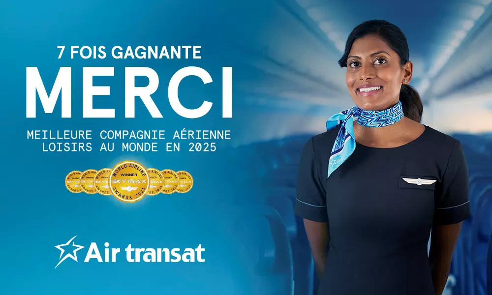 Air Transat obtient le titre de meilleure compagnie aérienne loisirs en Amérique du Nord aux World Airline Awards de Skytrax.